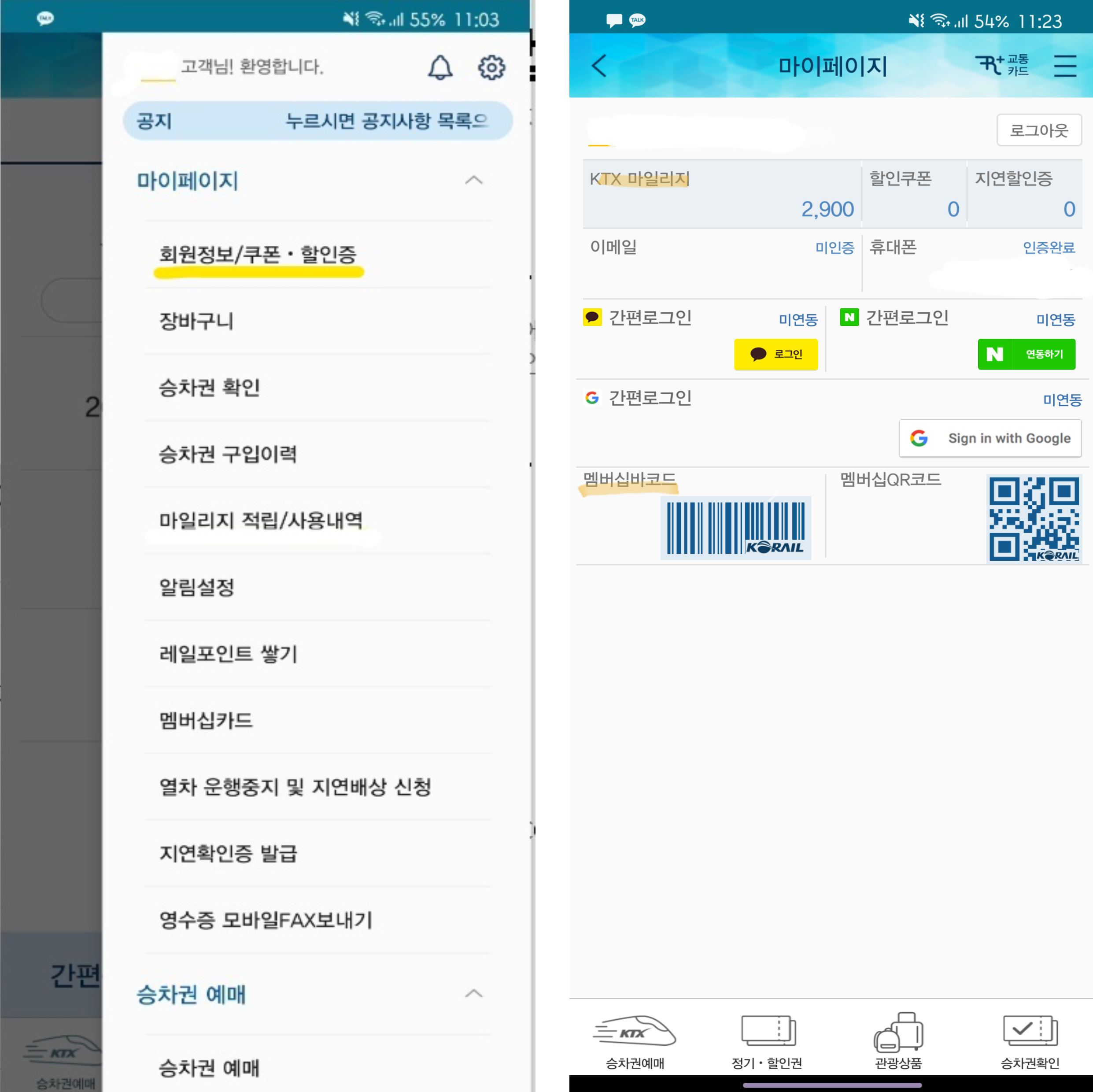 ktx마일리지로 매장에서 결제를 하기 위해서는 바코드가 필요한데요!